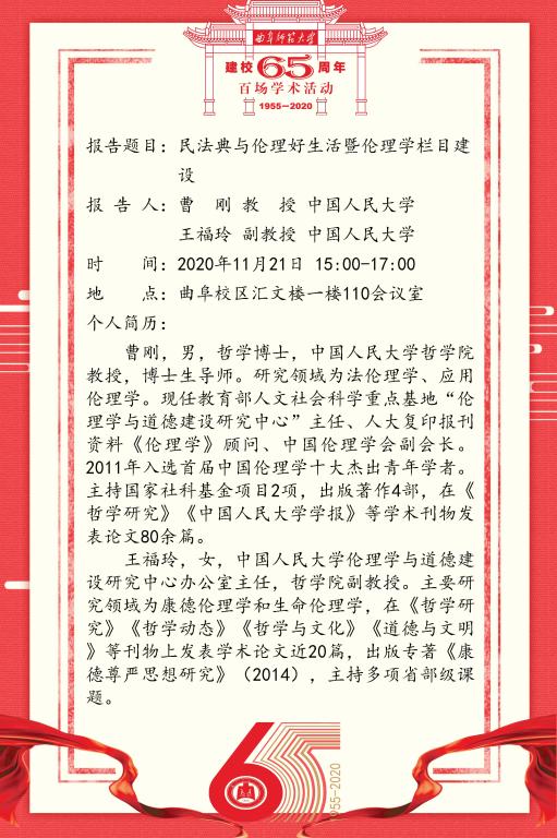 建校65周年百场学术活动-中国人民大学曹刚、王福玲教授