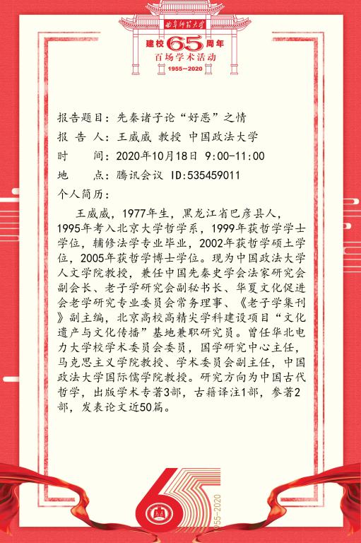 建校65周年百场学术活动-中国政法大学王威威教授