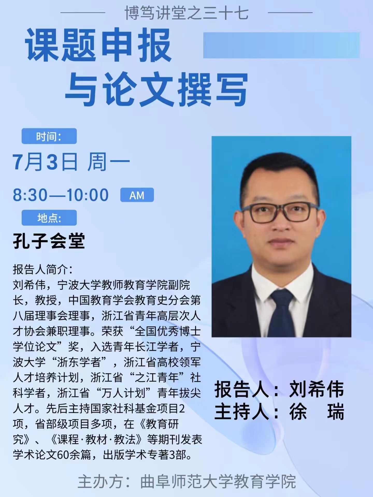 博笃讲堂预告| 刘希伟:课题申报与论文撰写