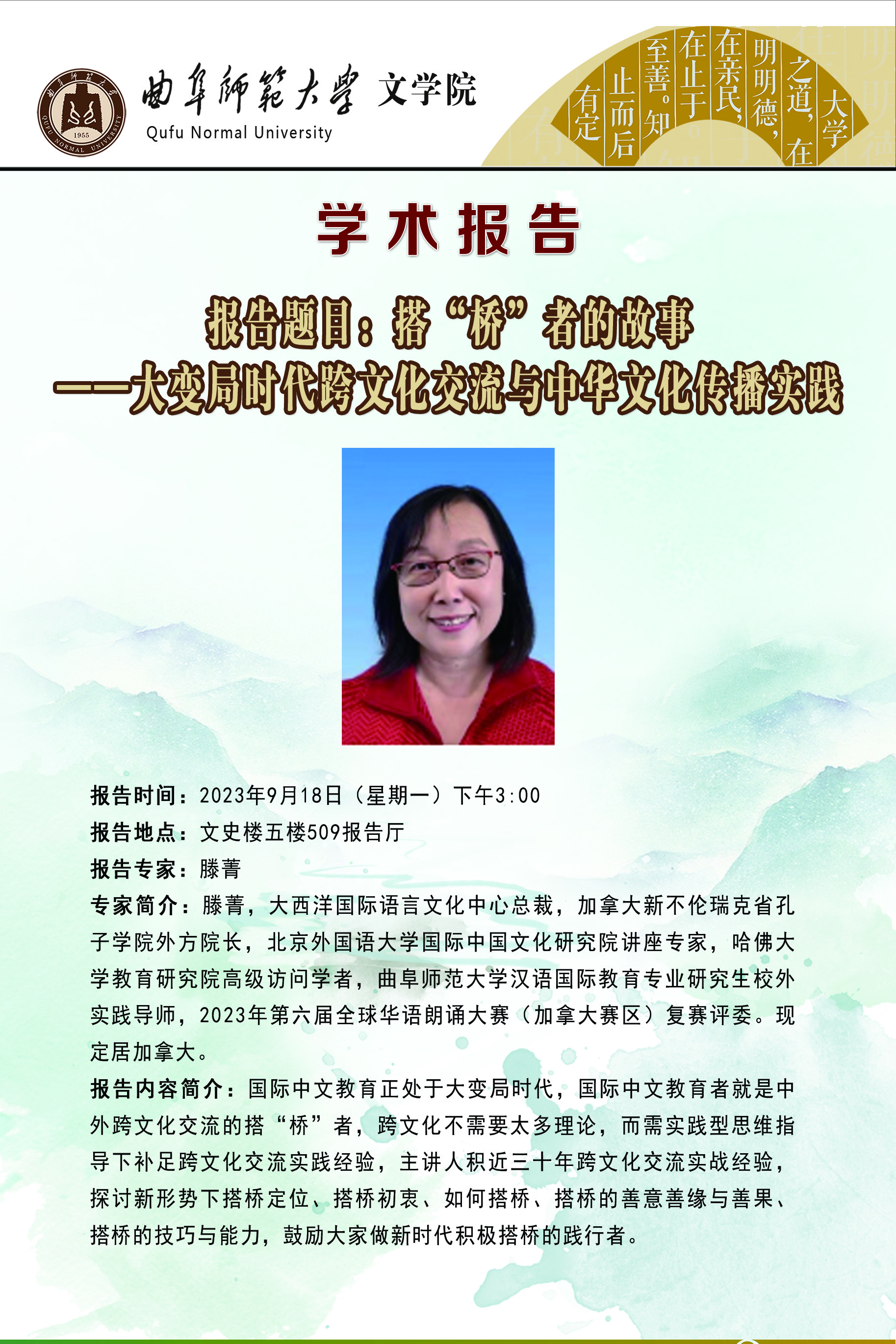 专家简介:滕菁,大西洋国际语言文化中心总裁,北京外国语大学国际中国文化研究院讲座专家,哈佛大学教育研究院高级访问学者,半岛在线体育网汉语国际教育专业研究生校外实践导师,2023年第六届全球华语朗诵大赛(加拿大赛区)复赛评委。现定居加拿大。