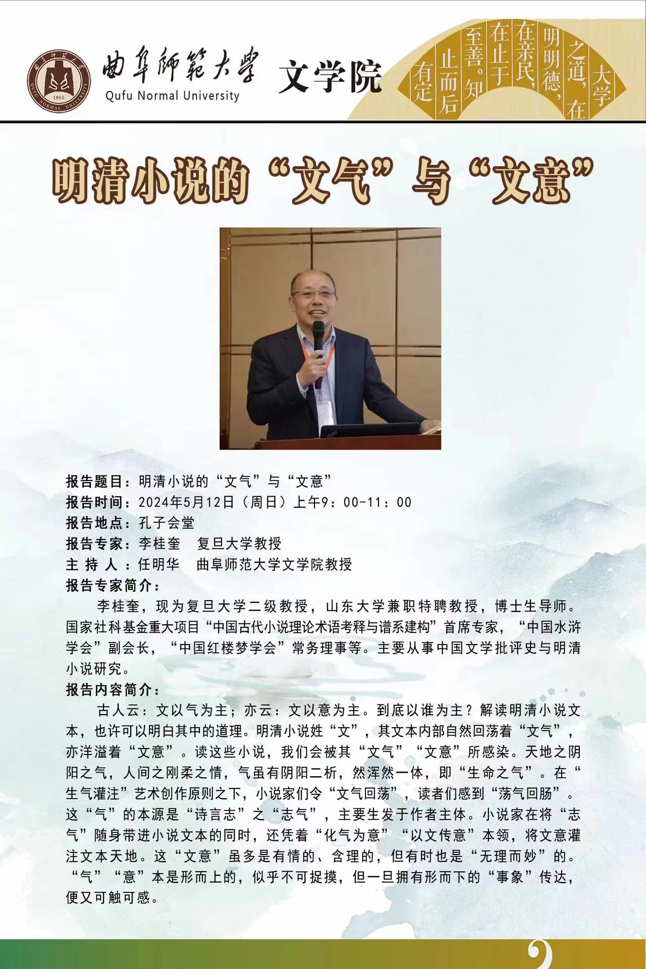 文学院学术报告预告:明清小说的“文气”与“文意”