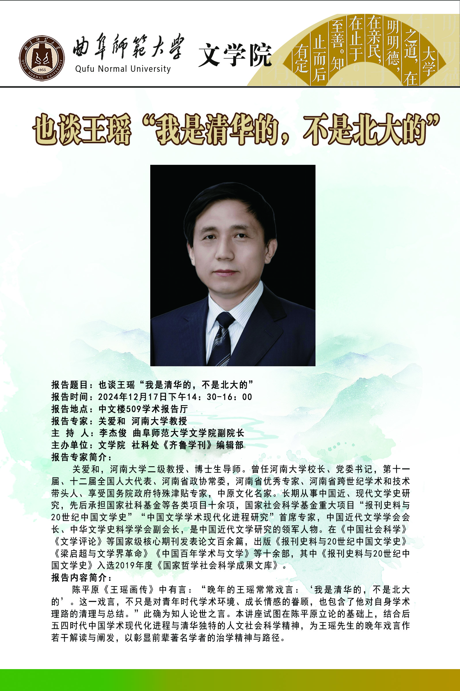 文学院学术讲座预告:也谈王瑶“我是清华的,不是北大的”