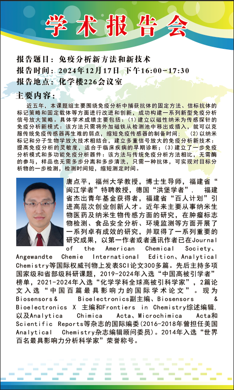 化学与化工学院学术报告预告:免疫分析新方法和新技术