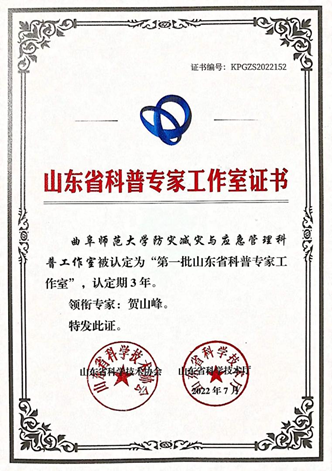 曲阜师大新闻中心讯 日前,山东省科协和省科技厅联合公布了第一批山东省科普专家工作室,曲阜师大地理与旅游学院贺山峰领衔的“半岛在线体育网防灾减灾与应急管理科普工作室”成功入选。