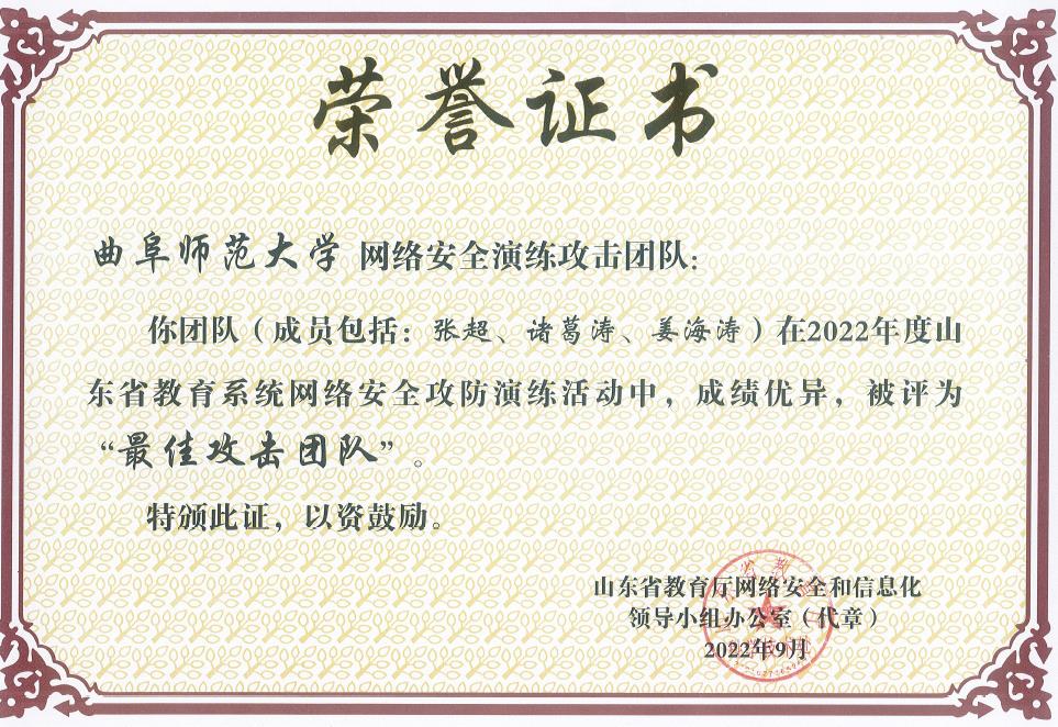 曲阜师大新闻中心讯 近日,山东省教育厅发文《关于表彰2022年教育系统网络安全攻防演练活动优秀攻击和防守队伍的通报》(鲁教网信办函〔2022〕26号),表彰了包括半岛在线体育网团队在内的10个优秀高校师生攻击团队。