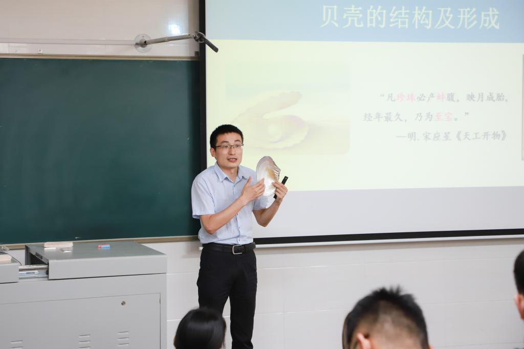 随后,高配科、陈峻峰和谢广龙三位老师分别为大家带来课程思政示范课展示。高配科老师在讲授活性污泥的产生过程中运用古诗词生动描述其具有污水处理能力特性,并结合污水产生的来源倡议同学们自觉减少生活污水,牢记“绿水青山就是金山银山”的生态理念。陈峻峰老师在讲授石墨烯的制备与应用时以神舟十三号载人飞船的成功发射为案例,引导同学们关注先进材料技术和国家战略资源的重要意义,鼓励同学们紧跟科技前沿、立志科技报国。谢广龙老师讲授贝壳的结构及形成时引用《天工开物》中关于珍珠记载描述,激发大家对传统文化的兴趣,同时结合珍珠的产生过程启示同学们在成才过程中要不惧磨砺、化艰难困苦为成长财富。