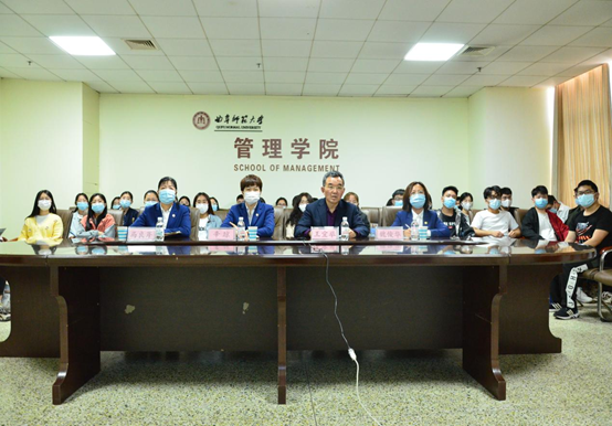 曲阜师大新闻中心讯(通讯员:董晓宇) 为拓宽毕业生就业渠道,做好2022届毕业生就业工作,4月20日下午,曲阜师大管理学院与明德集团联合举办了管理学院毕业生招聘会。管理学院院长王宜举,曲阜师大优秀校友、明德集团党委书记、董事长刘德明,明德集团人力行政中心总经理马敏等出席招聘会。会议通过线上宣讲和线下招聘的方式在济南与日照两地同步进行。