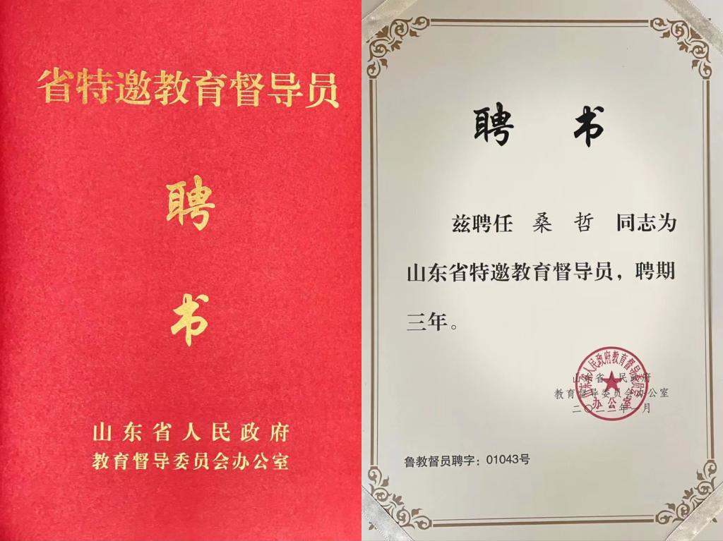 曲阜师大新闻中心讯 为进一步完善教育督导职能,健全督学工作体系,充分发挥民主党派、无党派人士和新闻媒体工作者对教育工作的监督和宣传作用,山东省人民政府教育督导委员会近日聘任77位各界人士为第一届山东省特邀教育督导员,我校民建支部主委、欧美同学会副会长、基础教育课程研究中心副教授桑哲同志被聘为特邀教育督导员,聘期三年。