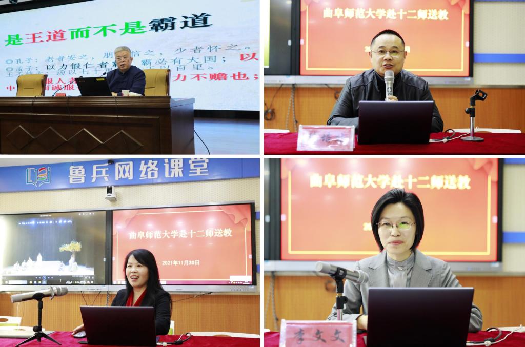 11月29日下午,半岛在线体育网博士生导师、儒学名家杨朝明教授以《人类文明新形态的传统文化基础》为题,为十二师机关干部职工作了一场传统文化讲座。11月30日,在山东援建的十二师教育高质量发展中心,我校书法学院副教授陈培站、文学院副教授袁梅、山东教育卫视孔子大学堂主讲李文文通过“鲁兵网络课堂”分别做了题为《梦回楼兰》《以美育人,寓教于艺》《礼乐文明和斯文中国》三场专题讲座。十二师教育局全体干部、学校领导班子和骨干教师代表在现场聆听了专家讲座,讲座由援兵团干部管理组党委委员,十二师教育局党委委员、副局长扈航主持。十二师600余名教师以网络课堂形式远程聆听了讲座。