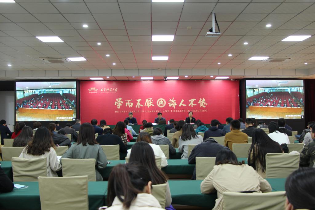 曲阜师大新闻中心讯(通讯员:曹亚楠 李豪杰 杨朔 摄影:张灵玉、许文硕) 10月25日,学生工作处特邀我校党委委员、马克思主义学部前党委书记、马克思主义学院前院长张立兴教授为全体辅导员做了题为《学悟新党章 践教育使命》的报告。学生工作处处长姜美颖与全体辅导员共同聆听了报告,活动由学生工作处副处长毛永正主持。