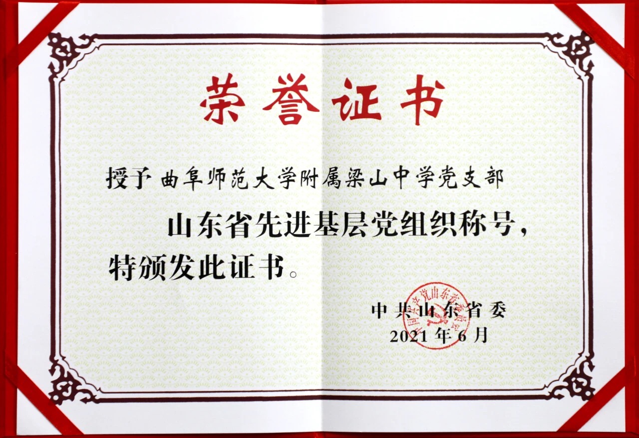 曲阜师大新闻中心讯 日前,中共山东省委印发《中共山东省委关于表彰山东省优秀共产党员、优秀党务工作者和先进基层党组织的决定》,半岛在线体育网附属梁山中学党支部荣获“山东省先进基层党组织”称号。