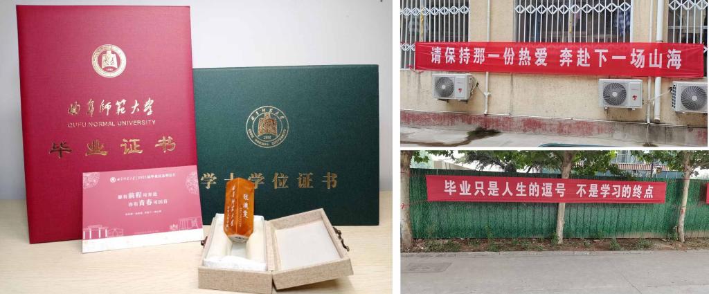 曲阜师大新闻中心讯(通讯员:刘永礼)一条条暖心寄语的横幅挂满曲阜师大的校园,一个个合影拍照定格在校园的每个标志性建筑旁。2021年的曲园毕业季充溢着温暖与情义,学校将立德树人贯穿毕业生离校教育全过程,以多种形式温情送别毕业生,打通了服务毕业生“最后一公里”。