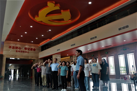 在王尽美党性教育基地,师生党员瞻仰了王尽美烈士故居,参观了王尽美党性教育主题展馆,通过观看王尽美的珍贵历史图片、资料和展品开展现场教学,深入了解老一辈共产党人的艰苦奋斗与卓越成就。在王尽美烈士雕像前,全体党员面向鲜艳的党旗庄严宣誓,重温入党时的庄严承诺,缅怀革命先烈的光辉事迹,从党的历史中汲取力量。