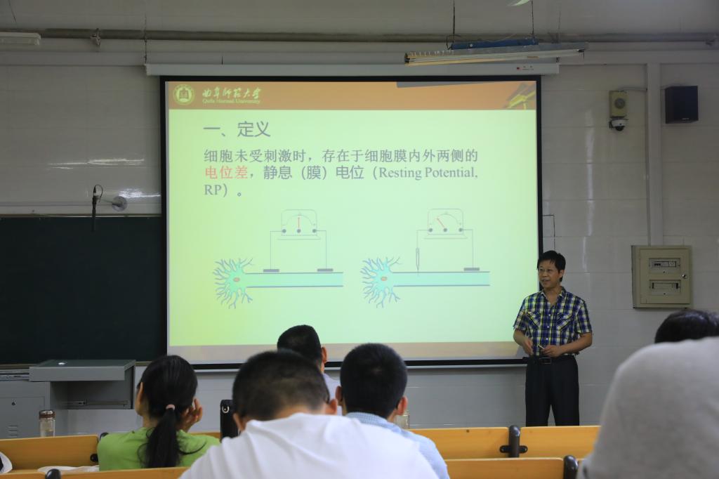 曲阜师大新闻中心讯(通讯员:刘彦彦) 为深入学习习近平总书记在全国高校思想政治工作会议和全国教育工作会议上的重要讲话精神,全面贯彻落实教育部《高等学校课程思政建设指导纲要》,把思想政治工作贯穿教育教学全过程,进一步推进“课程思政”教学改革,充分发挥课堂教学的育人渠道作用,6月2日下午,生命科学学院举办首届“课程思政”示范课展示活动。学院党委书记李志广、副院长王仁君、院长助理燕艳、首届“课程思政”示范课展示教师以及学院全体专任教师参加了活动。活动由副院长王仁君主持。