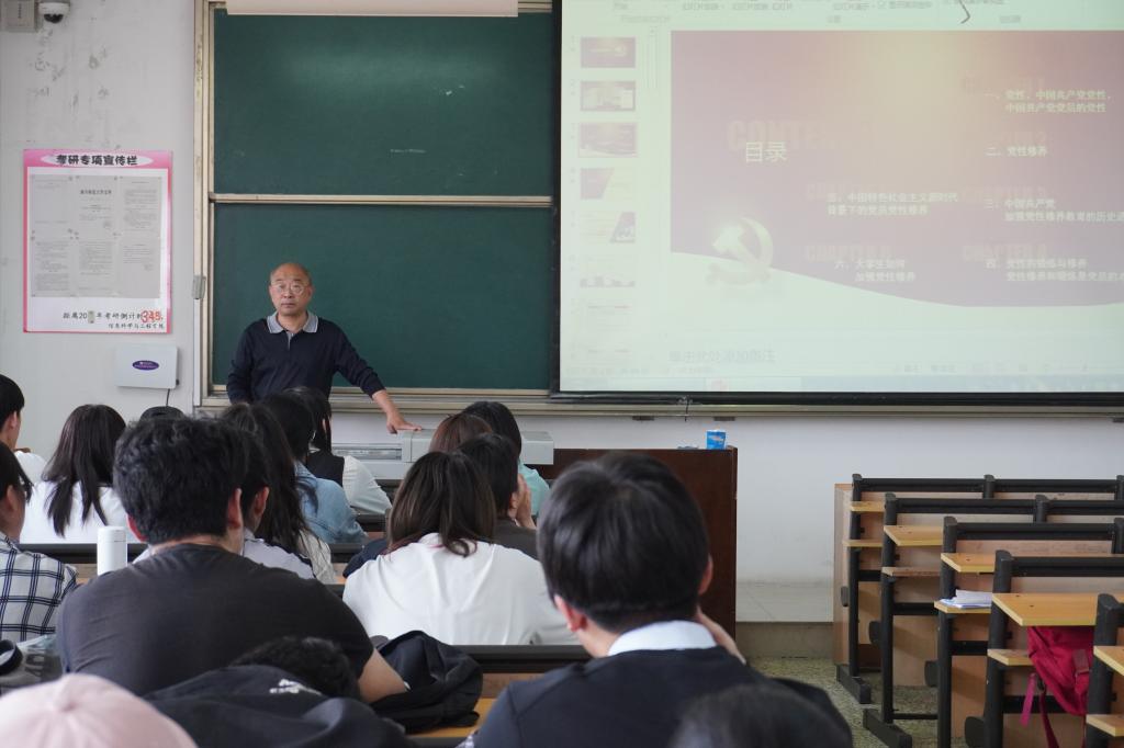 学院党委副书记肖龙航围绕“中国共产党的党性”这一中心思想,为2018级计算机科学与技术五班的同学们带来了一场精彩而生动的思政课。肖龙航同志从鸦片战争开始讲起,从一幅幅壮丽的历史画面中,向同学们阐述了中国共产党能取得伟大胜利的原因,重点就中国共产党党性以及党性的具体内容进行了讲授。