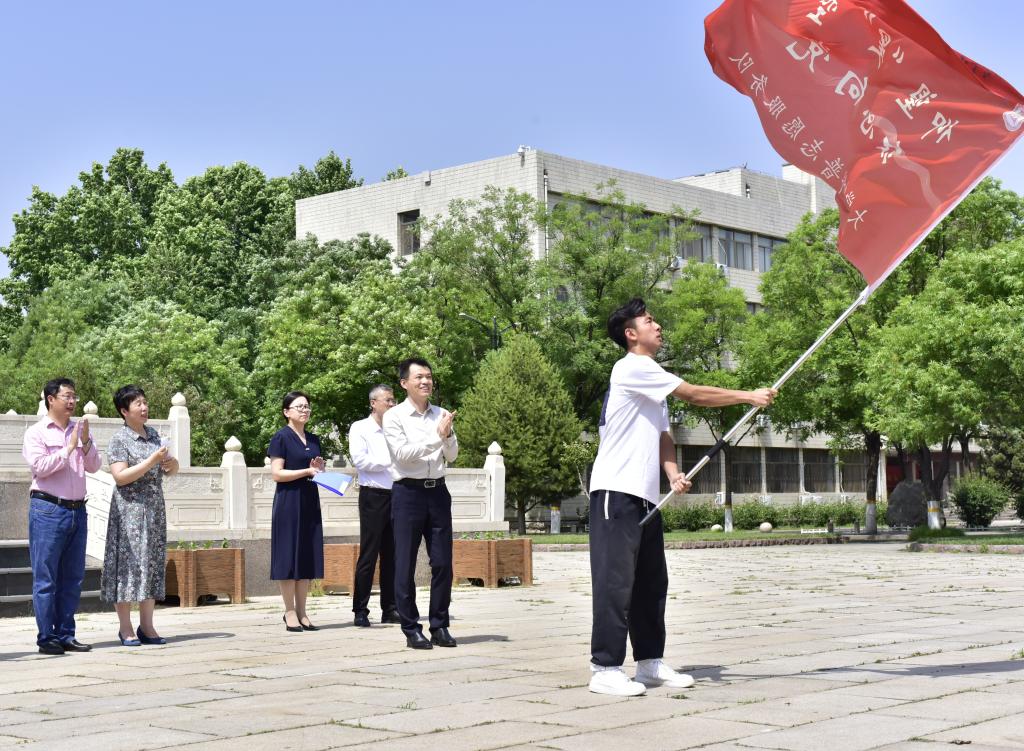 5月26日下午,在孔子文化广场举行活动启动仪式。党委常委、宣传部部长张隆海,学生工作处、物理工程学院、山东天文学会主要负责人出席活动。张隆海为“仰望‘星’空,红心向党”大学生科普志愿服务队授旗。