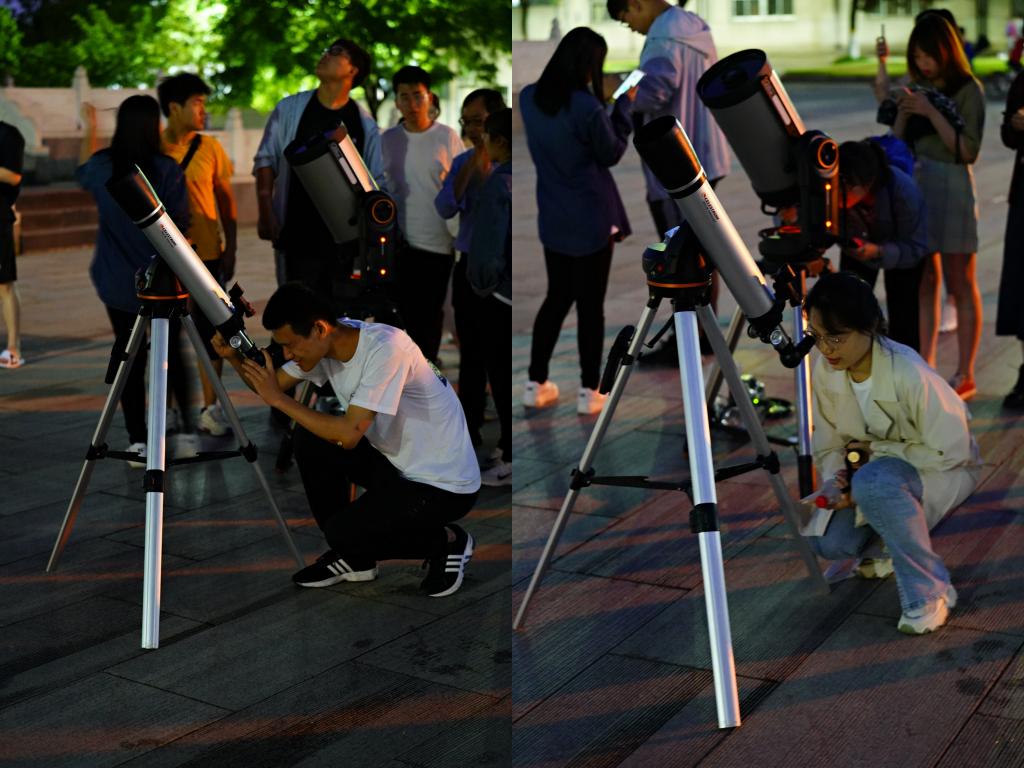 本次系列活动突出大学生群体,精心设计活动内容和载体,增强教育感染力。5月26日下午和晚上分别开展了“重温红色科学路,致敬爱国科学家”图片展、“来自星空的问候”天文科普知识展、太阳黑子观测和月全食观测活动。