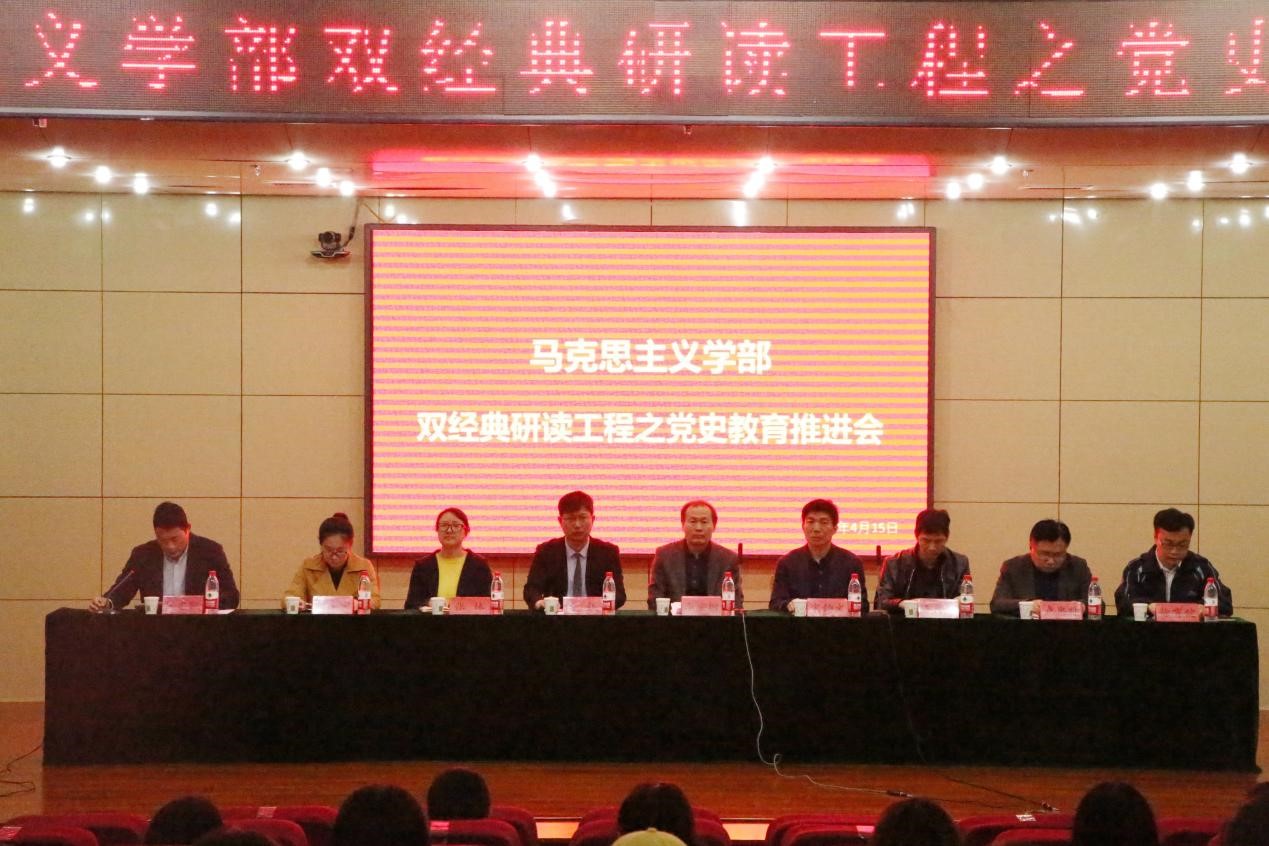 曲阜师大新闻中心讯4月15日下午,马克思主义学部于图书馆报告厅举行双经典研读工程之党史教育推进会。马克思主义学部党委书记、马克思主义学院院长李安增,马克思主义学部党委副书记宋钧文,马克思主义学院思想政治教育系主任汤锐,政治与公共管理学院团委书记王元如,马克思主义学院团委书记张林,马克思主义学部教师代表卢忠帅、朱宁宁、徐霄健以及学部辅导员老师受邀出席,学生党员、预备党员及部分2019级、2020级学生代表积极参与。本次大会由党史教育推进会启动仪式与党史教育分享会两部分组成,分别由马克思主义学部党委副书记张忠凯及马克思主义学院学生会主席韩凯乙主持。
