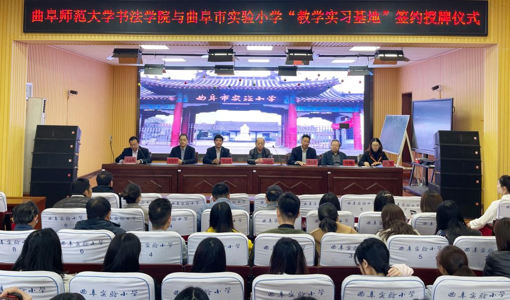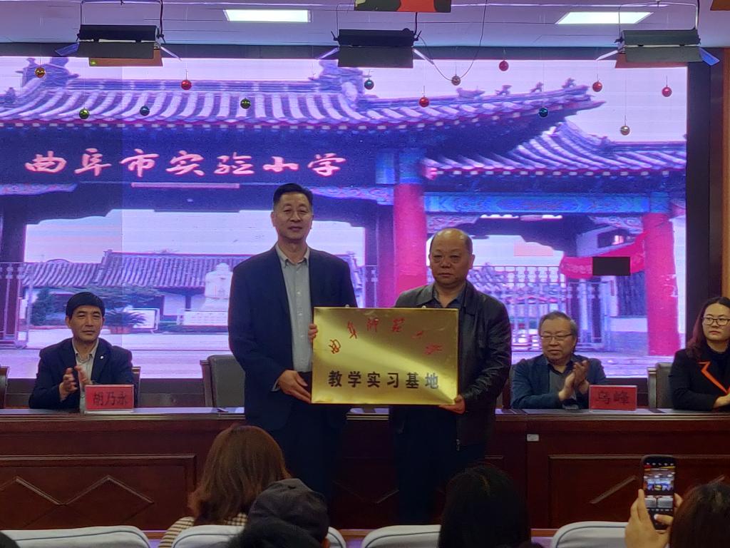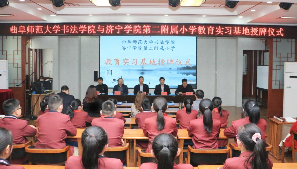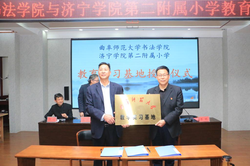 曲阜师大新闻中心讯(通讯员:薛翠)4月14日下午16:00和15日上午9:00,书法学院“教学实习基地”签约授牌仪式先后在济宁学院第二附属小学和曲阜市实验小学举行。书法学院党委书记荆兆清同志,副书记胡乃永同志,书法学院乌峰教授,书法学院办公室主任刘育华,2018级本科生辅导员薛翠老师,济宁学院第二附属小学苏明副校长,曲阜市实验小学王利民校长出席了签约与授牌仪式。
