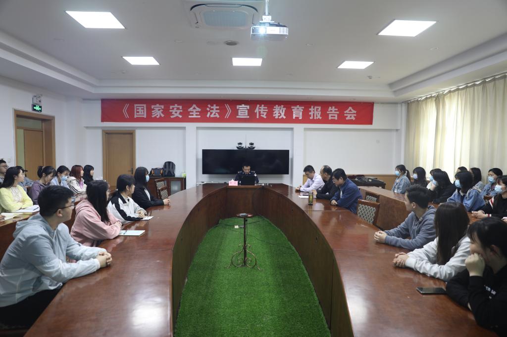程警官结合国内外近期典型案例,借助PPT的形式就我国在新时代面临的安全挑战、当代大学生如何维护国家安全等内容做深入讲解。报告内涵丰富、发人深省。师生纷纷表示,此次报告使他们进一步了解了维护国家安全的相关法律知识,对国家安全和保密工作的重要性有了更加直观和深刻的认识。