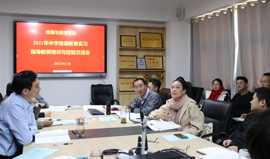 曲阜师大新闻中心讯(通讯员:周维国 摄影:孙丕苓) 1月18日下午,地理与旅游学院召开2021年中学地理教育实习指导教师培训与经验交流会。院长张全景、副院长吴军出席,全体教育实习指导教师参加会议。