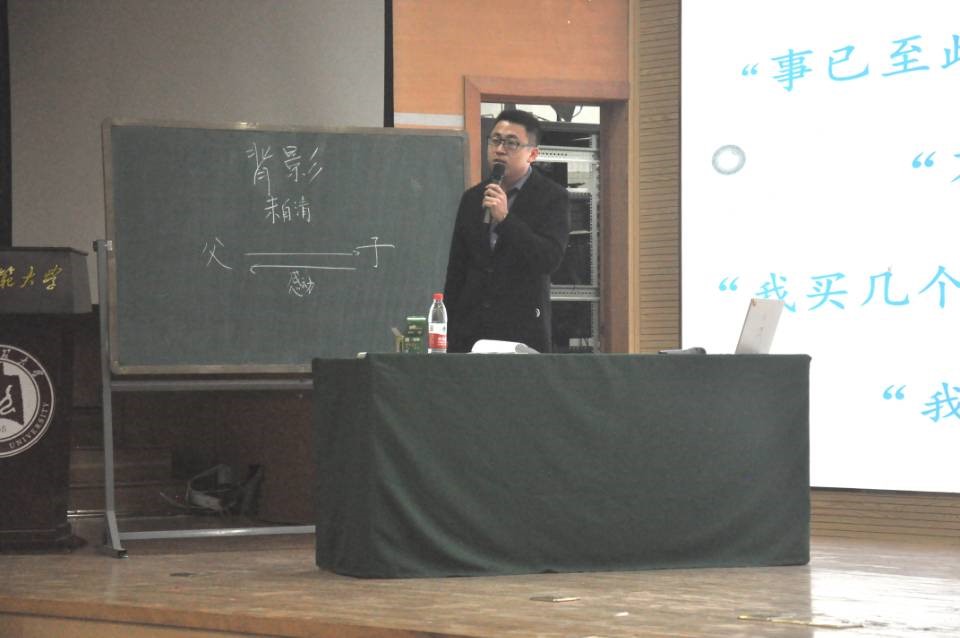 首场培训,曲阜市优秀教师、实验学校许成老师受邀讲授朱自清的《背影》一文,为同学们带来一堂精彩绝伦的示范课。在授课过程中,许老师以饱满的热情,娴熟的教学技法,通过对课文的分析讲解阐述了课文的深刻主题。授课结束后,许老师进行教学经验分享,并针对同学们的问题作出详细解答。许老师指出“如何围绕教学中心进行教学设计”是教学中的重要问题,提出“教学是用教材教而非教教材”的真知灼见,帮助同学们正确理解教材在教学过程中的作用。最后,许老师点明,语文教学的重要目的是让人变得更加美好。同学们沉浸其中,收获颇多。
