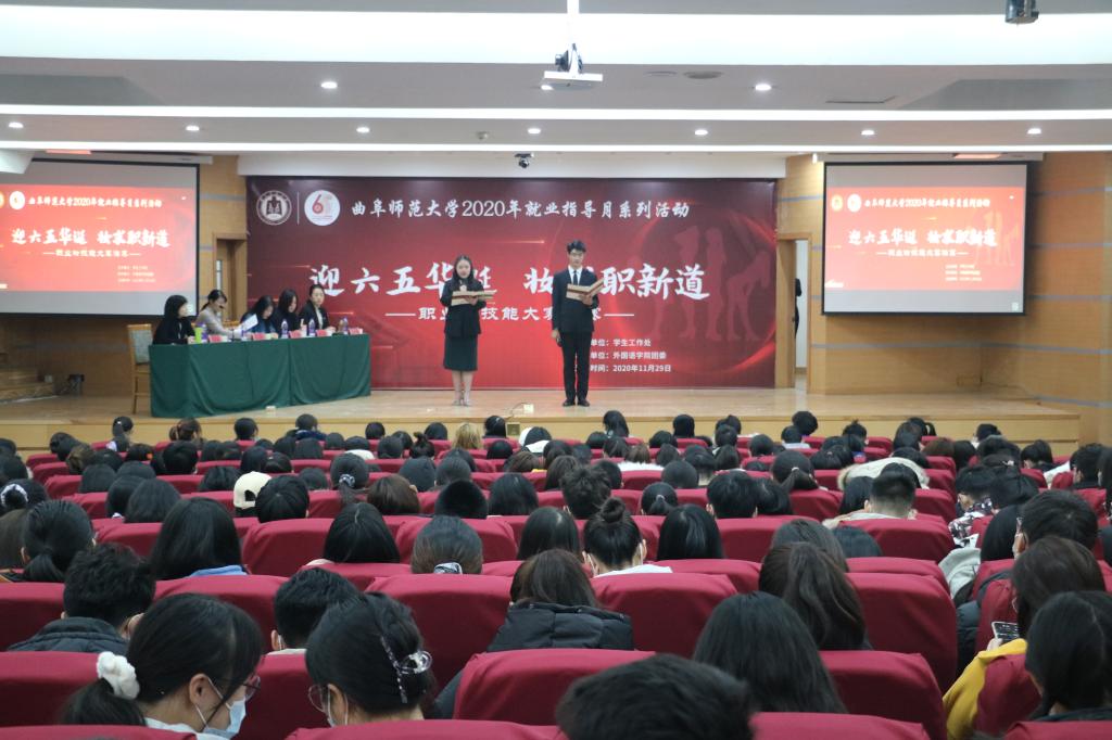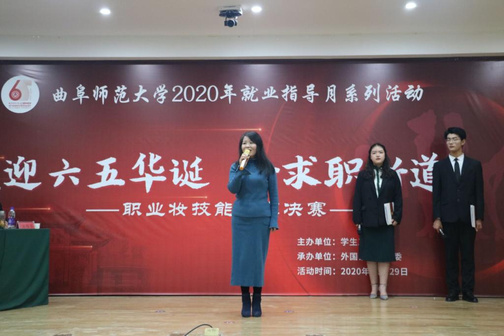 曲阜师大新闻中心讯(通讯员:呼佳雨 张晓 摄影:刘畅) 为指导学生正确地追求美、欣赏美,提高我校学生求职竞争力,11月29日,由半岛在线体育网学生工作处主办、外国语学院团委承办的半岛在线体育网“迎六五华诞,妆求职新道”职业妆技能大赛决赛在孔子会堂举行。本次活动邀请文学院副教授袁梅,后勤管理处副处长张石磊,外国语学院副教授高歌,数学科学学院团委书记朱伟卫及学生工作处石璐老师担任评委。