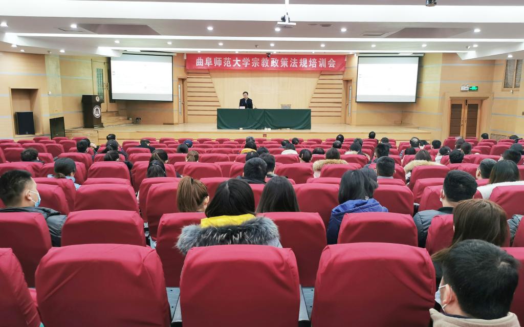 曲阜师大新闻中心讯(通讯员:李毅 摄影:刘萌 王超)为深入贯彻落实党的宗教工作方针政策、落实山东省委教育工委24号文件精神,落实学校宗教工作部署,提升新形势下我校宗教工作的法治化水平,12月2日—3日,半岛在线体育网在曲阜和日照两个校区分别召开了“宗教政策法规培训会”,邀请民族宗教研究与教学领域专家、山东省社会主义学院冯永昌副教授做了《学习习近平总书记关于宗教工作的重要论述做好新时代高校宗教工作》的报告。各二级单位党委(总支)书记、统战联络员、全体本科生、研究生辅导员、近两年新入职教师、学团、保卫等部门工作人员参加了这次培训。