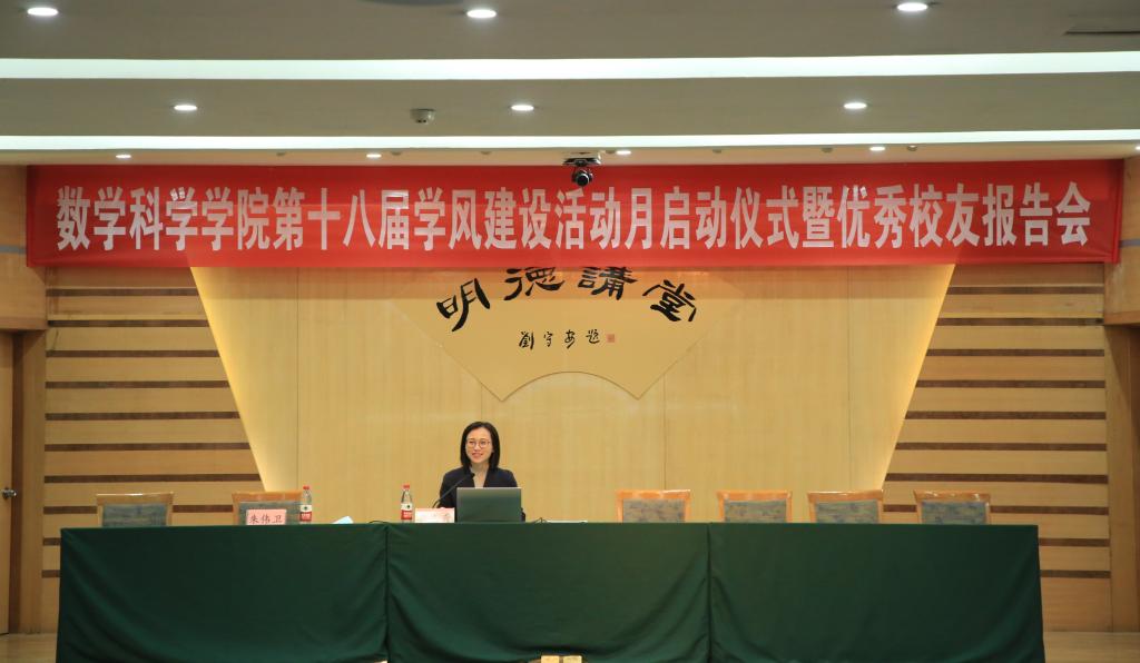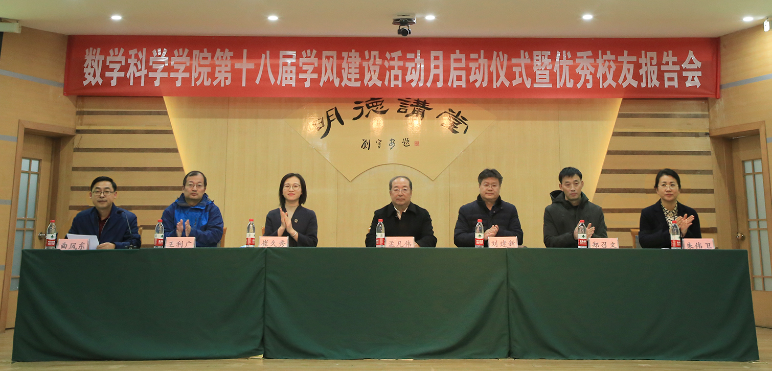 曲阜师大新闻中心讯(通讯员:谭睿垚 姚鹏飞) 11月25日,曲阜师大数学科学学院第十八届学风建设活动月启动仪式暨优秀校友报告会在孔子会堂隆重召开。学院党委书记刘建新,院长孟凡伟,党委副书记曲凤东、副院长郑召文、王利广、团委书记朱伟卫,优秀校友崔久秀出席仪式,2019级和2020级学生参加了仪式。启动仪式由曲凤东主持。