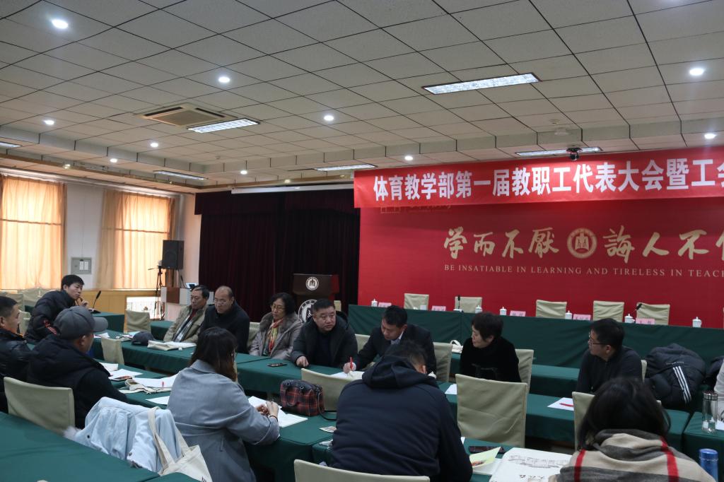 随后,根据大会日程安排,体育教学部第一届教职工代表大会暨工会会员代表大会两个代表组举行了分组讨论。各代表组围绕《体育教学部工作报告》《高等学校体育工作基本标准》等议题认真讨论审议。主席团会议听取了各代表组组长关于本组讨论情况的汇报,重点审议了《关于体育教学部工作报告的决议(草案)》《体育场馆的使用办法及合理收费》《公共体育课工作量同工同酬》《训练及课外活动工作量计算草案》,决定提交大会表决。体育教学部第一届教职工代表大会暨工会会员代表大会举行的第二次全体会议中,全体通过了《关于体育教学部工作报告的决议(草案)》《体育场馆的使用办法及合理收费》《公共体育课工作量同工同酬》《训练及课外活动工作量计算草案》。