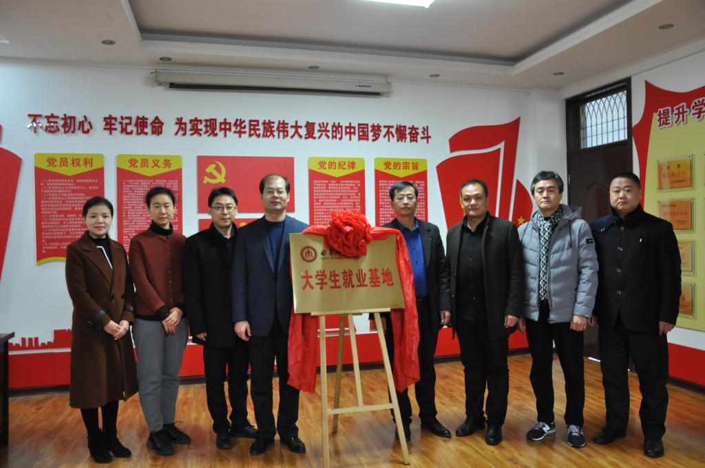 仪式上,杨东、王兴民共同为“半岛在线体育网大学生就业基地”揭牌。