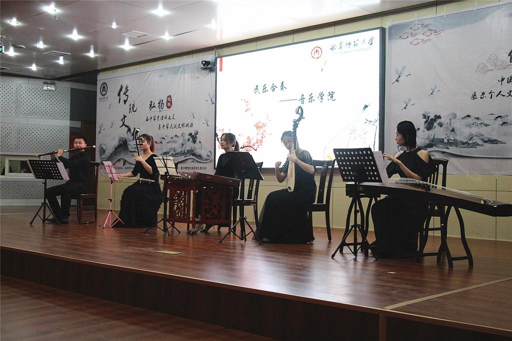 移步袅娜,水袖惊鸿,伴随着传媒学院舞蹈队带来的古典舞《琵琶行》,第四届文化达人挑战杯决赛拉开序幕。比赛难度虽然增加,但选手的实力也不容小觑,争分夺秒力夺头筹。决赛中,不仅有选手们的答题风采,还有精彩的节目表演。猗兰传统文化学社为观众带来了汉服秀《烟雨行舟》,在典章华服中品味江南水墨风韵;音乐学院同学们为大家带来了民乐演奏《寻梦》,在弦歌妙音中感受传统民乐的魅力;最后法学院高亚楠同学为大家带来了《春江花月夜》的美文诵读,在声情画意中体悟古诗哲理。经过激烈的角逐,地理与旅游学院的卢冰坤凭借其丰富的文化素养取得了本次大赛的一等奖;地理与旅游学院的张翰匀、信息科学与工程学院的于杰荣获二等奖;政治与公共管理学院的张芳龄、传媒学院的魏彧璇和美术学院的黄绍雷荣获三等奖。