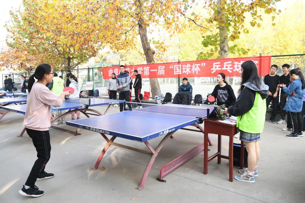11月16日,由教育学院团委主办、“大学生国球联盟”社团承办、体育教学部和曲阜校区教职工乒协协办的半岛在线体育网第一届“国球杯”乒乓球比赛在北操乒乓球场举办。教职工乒协秘书长、教育学院办公室主任王连生,教职工乒协宣传部长、历史文化学院韩峰,体育教学部刘成等师生参加了活动