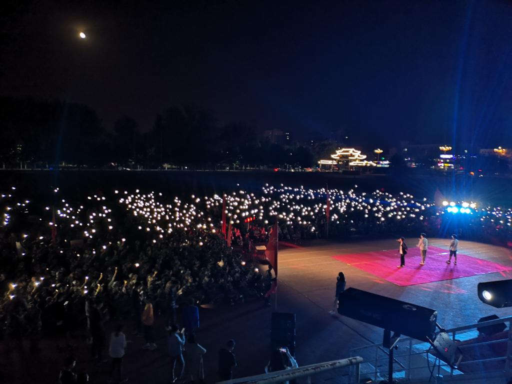 9月18日晚,在两校区操场,分别开展了红歌汇演活动。各学院组成合唱方队,同学们身着军装,慷慨激昂,声音响彻云霄。为了更充分地展示同学们的爱国热情和各学院风采,各学院还设计了挥舞红旗、肢体表演、配乐朗诵等形式,精彩绝伦。学院红歌展演期间,大学生艺术团等还穿插表演了精彩的节目。现场聚光灯、手指灯、手机电筒灯交相闪烁,掌声、歌声不绝于耳,夜幕下的操场变成了同学们以独特形式表达爱国情感和集体主义情怀的大舞台。