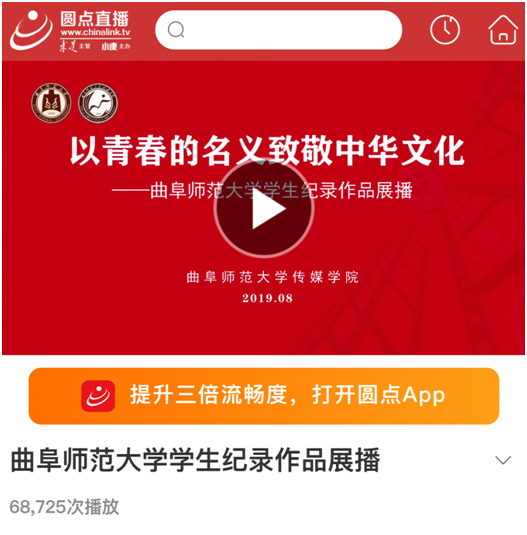 近日,我校传媒学院赵鑫老师指导学生制作的12部纪录片作品,在新媒体平台“圆点直播”上围绕“以青春的名义致敬中华文化——半岛在线体育网学生纪录作品展播”为主题进行专题展播,视频点击量近9万次。“圆点直播”是由中共中央机关刊物求是杂志社旗下小康杂志创办的一家记录中国全面小康进程,直击中国财经和民生风貌的视频直播平台,集权威性和实务性于一身。