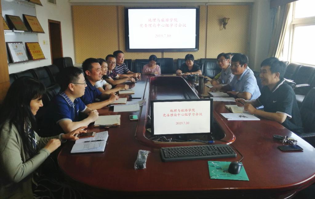 7月10日下午,地理与旅游学院党委理论学习中心组集中学习习近平在“不忘初心、牢记使命”主题教育工作会议上的讲话精神,传达学习《中共山东省委关于在全省开展“不忘初心、牢记使命”主题教育的实施意见》。学院党委委员、各党支部书记和党员代表参加学习会。党委书记苏占兵主持学习活动。
