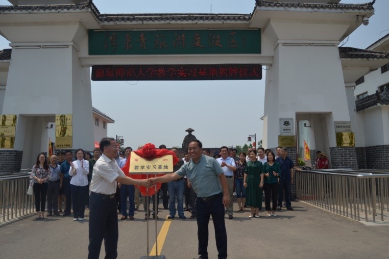 为更好地实现人才培养目标,给学生营造一个良好的实习环境,进一步加强实践性教学环节,培养学生实际动手能力, 7月3日上午,我校音乐学院与浮来青集团校企合作签约仪式顺利举行,音乐学院教学实习基地落户浮来青集团。出席此次仪式的嘉宾有:莒县人民政府副县长纪淑霞,莒县文化和旅游局局长高树华,莒县文化和旅游局副局长王亚蕾,莒县文化和旅游局党组成员赵雅楠;夏庄镇党委宣传委员刘喜梅,莒县文化馆馆长马树晓,浮来青集团董事长卢宝春;音乐学院党委书记胡长春,音乐学院院长肖桂彬等。仪式由高树华主持。