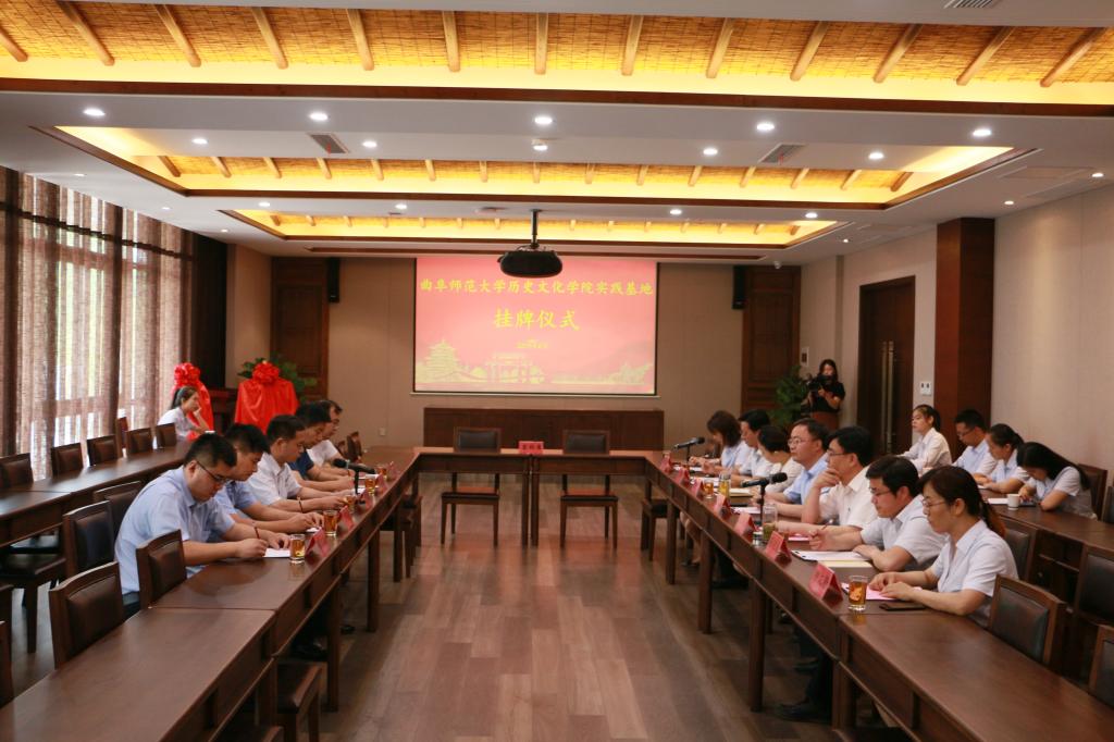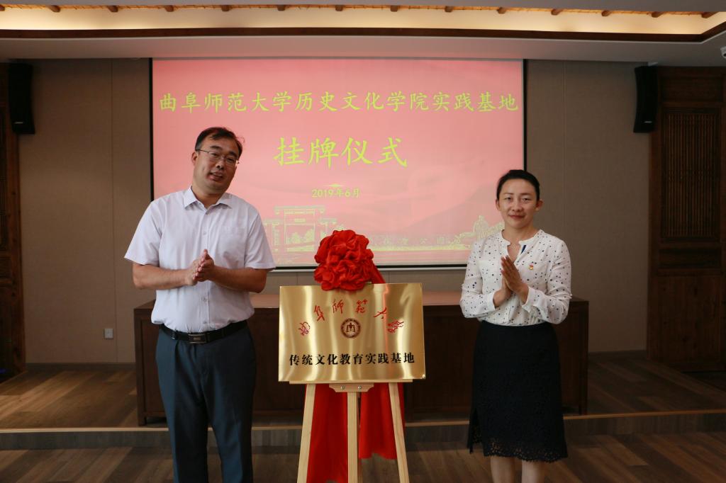 6月21日上午,历史文化学院在复圣文化旅游区举行文化产业管理专业实践教学基地及传统文化教学实践基地揭牌仪式。学院党委书记尹明法、副院长吕厚轩、教工党支部书记及副教授张俊成、团委书记王建阳、续大鹏老师;宁阳县委常委及组织部长周鹏飞、宁阳团县委书记李琳、县委宣传部副部长孙雁龙、县文旅局党组成员及副局长李全华和县统筹公司及山东复圣文化产业股份有限公司相关同志出席仪式。