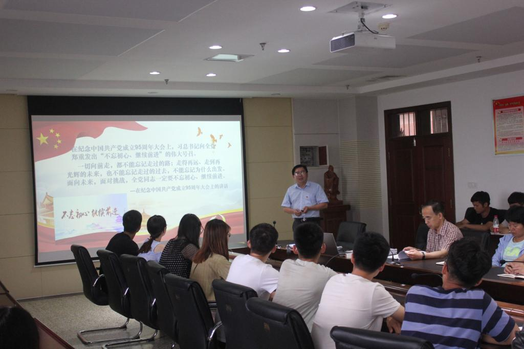 会议首先进行“不忘初心、牢记使命”学习研讨,学习了习近平总书记在“不忘初心、牢记使命”主题教育工作会议上的重要讲话精神,要求全体党员对照总书记提出的“守初心、担使命,找差距、抓落实”的总要求,联系自身实际,撰写学习心得,向党的生日献礼。