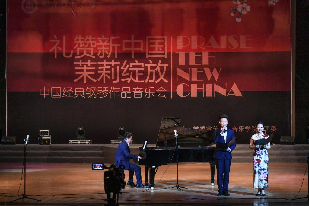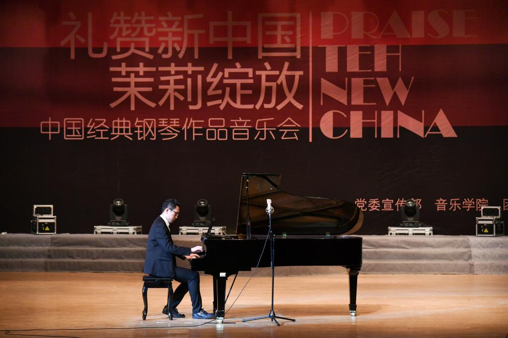 “礼赞新中国 奋进新时代” 6月22日晚,由党委宣传部、音乐学院和团委联合举办的“《茉莉绽放》中国经典钢琴作品音乐会”在逸夫学术交流中心礼堂精彩上演。