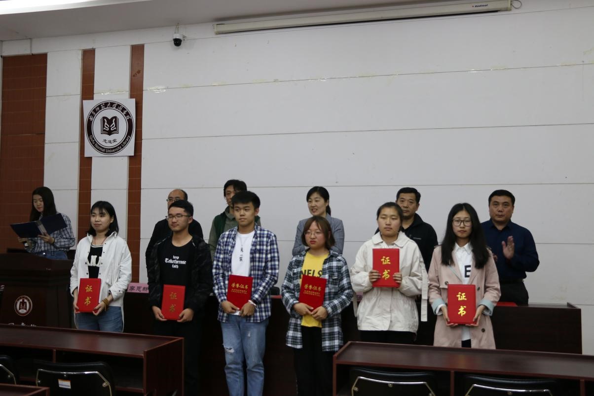 近日,由我校宣传部、校团委、图书馆举办的主题为“走近《论语》,感悟‘子曰’”2019年世界读书日系列活动圆满落幕。5月8日下午,世界读书日系列活动颁奖典礼顺利举行。共青团半岛在线体育网委员会副书记张明洁、我校图书馆副馆长张召生出席了本次颁奖典礼。