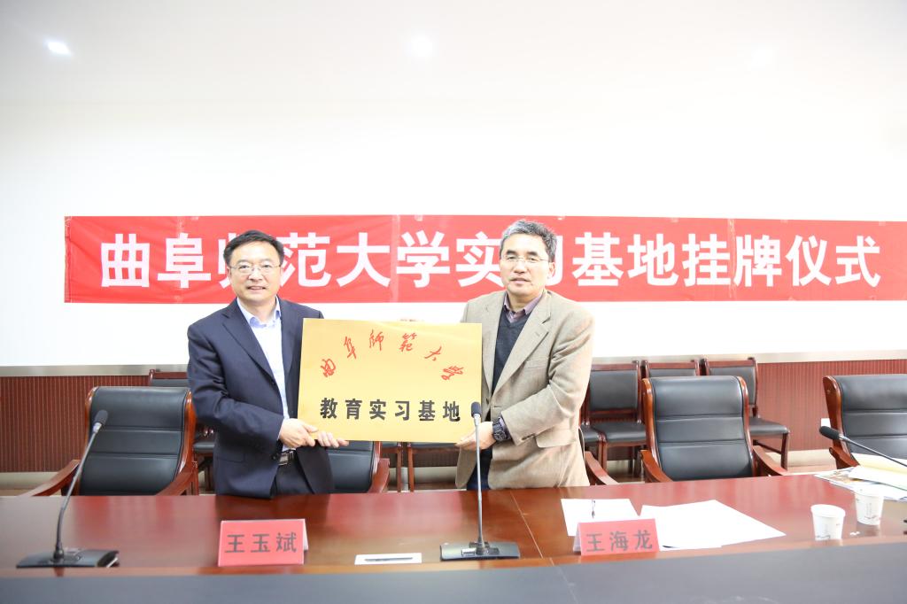 仪式上,王海龙分别与泰安一中校长常希贞、泰安实验中学校长王冲、泰安市岱岳区开元中学校长王玉斌代表双方学校签署合作协议,并为教育实习基地揭牌。