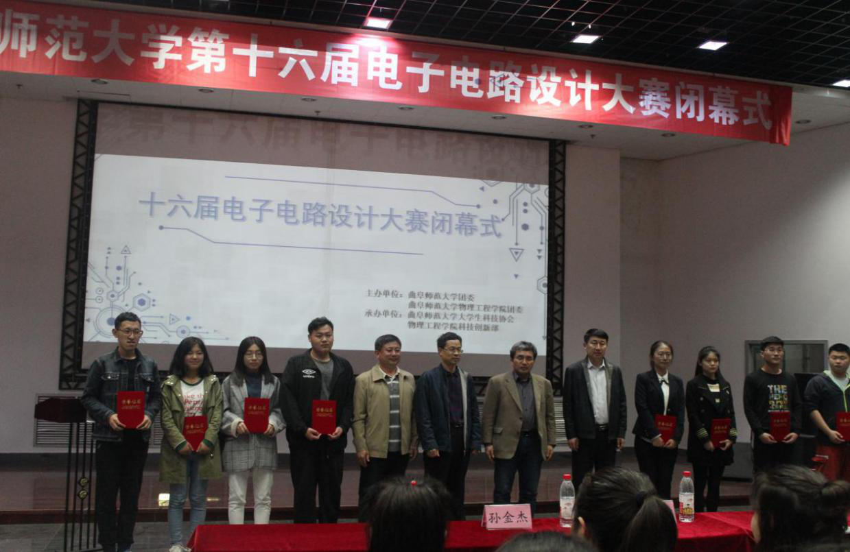 4月26日,物理工程学院第十六届电子电路设计大赛圆满闭幕。此次大赛以“创新有我,畅想生活”为主题,由半岛在线体育网团委联合物理工程学院学生会主办,半岛在线体育网大学生科技协会、物理工程学院学生会科技创新部共同承办。比赛先后在大学生活动中心广场、综合教学楼和实验中心举行。大赛闭幕式在大学生活动中心401教室举行,校团委书记宋国栋,我院党委副书记孙金杰、副院长王海龙以及特邀嘉宾赵建平教授出席闭幕式。闭幕式由我院团委副书记高琳然主持。