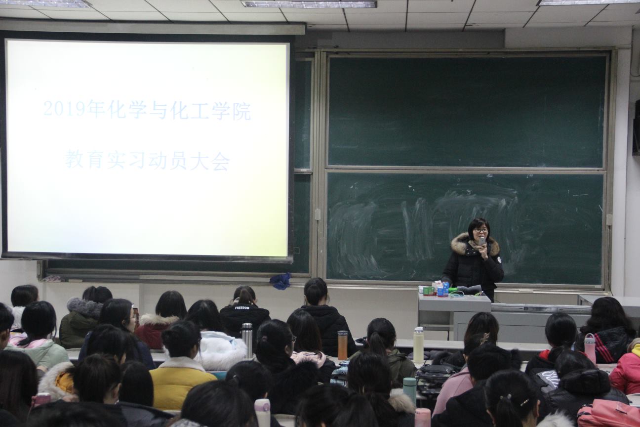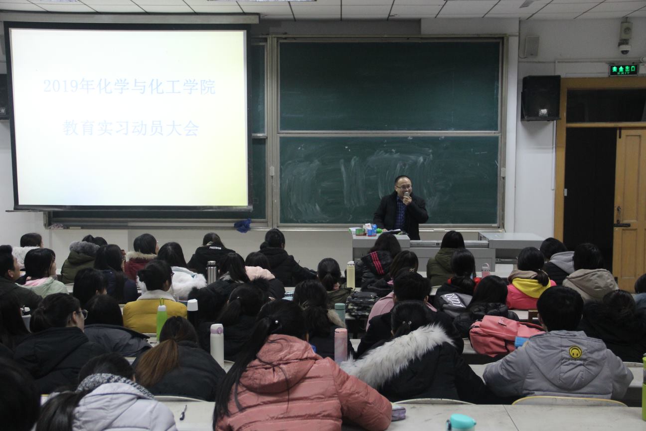 为贯彻落实《半岛在线体育网师范生实习支教工作管理办法》相关规定,保障实习工作顺利开展,1月18日,我校化学与化工学院举行了2016级师范生教育实习动员大会。学院相关负责人、2016级化学专业全体师范生参加了会议。会议由胡蕾老师主持。