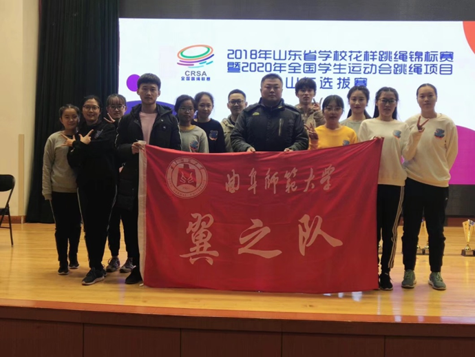 2018年12月28日至30日,2018年山东省学校花样跳绳锦标赛暨2020年全国学生运动会跳绳项目山东省选拔赛在济南市举行。本次比赛由山东省学校体育协会和山东省体操运动管理中心主办,来自我省的大学和高职高专共九支大学代表队约100余名运动员参加了大学普通组的比赛。