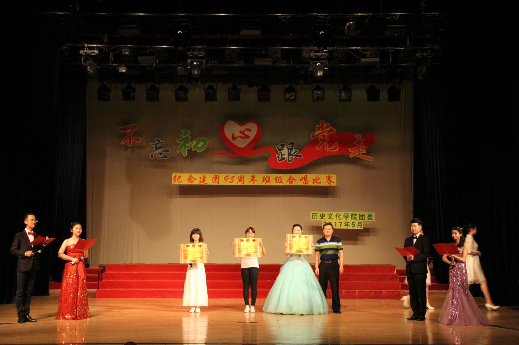 5月13日晚,历史文化学院“不忘初心跟党走”——2017年纪念建团95周年班级合唱比赛在大学生活动中心礼堂举行。