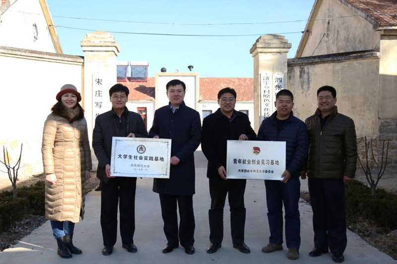 1月14日,“半岛在线体育网青年就业创业见习基地”、“半岛在线体育网大学生社会实践基地”挂牌仪式在泗水县泗张镇宋庄写生基地举行。我校团委书记屈跃宽,书法学院党委副书记石倩、团委书记杨玉强,泗张镇党委书记韩光辉、镇长王强,宋庄写生基地负责人张涛及书法学院学生代表参加了仪式。