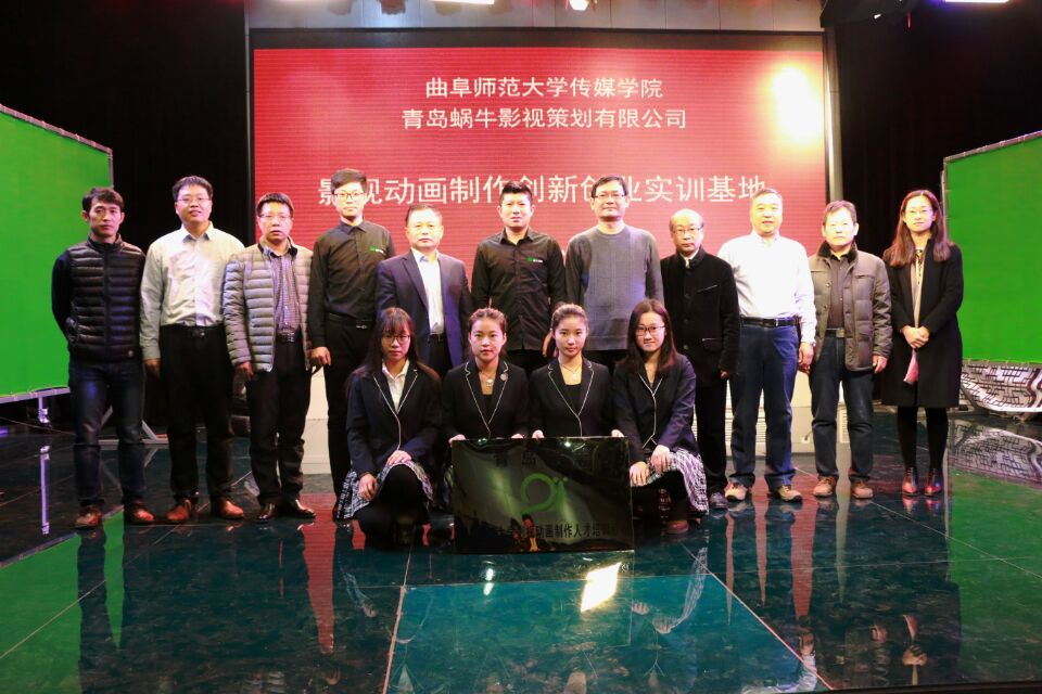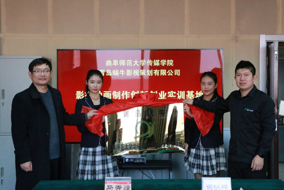 12月1日,青岛蜗牛影视公司——半岛在线体育网影视动画制作人才培养基地揭牌仪式在我校顺利举行,传媒学院院长马秀峰、副院长王焕景,教务处副处长张全景,青岛蜗牛影视策划有限公司CEO 崔明鹏、经理崔叶涛以及招生就业处、传媒学院相关师生出席揭牌仪式。