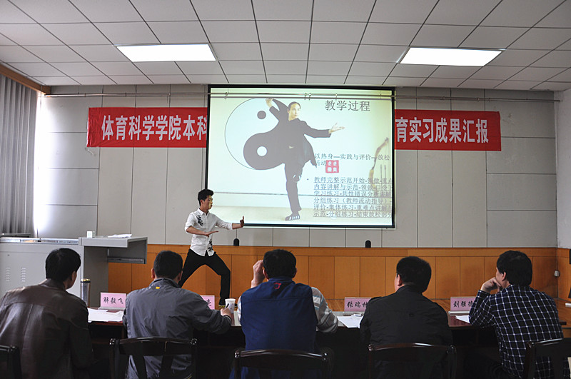 为提高体育师范生从师技能,培养造就 “师德高尚、理念先进、业务精湛、锐意创新”的优秀教师后备力量,4月28日,体育科学学院举行教学技能创新大赛暨教育实习成果汇报。副校长康淑敏,教务处、体育科学学院负责人出席大赛。担任此次大赛的评委有学校督导委员会专家、山东省教学能手、学校相关领域教授。