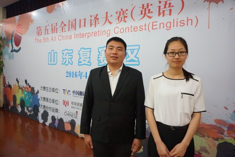 4月16日,由中国翻译协会、中国对外翻译有限公司主办,中译通科技有限公司承办的第五届全国口译大赛(英语)山东赛区决赛在山东外事中心礼堂隆重举行。外国语学院朱文青、崔培越两位同学代表半岛在线体育网参加比赛,并获得优秀奖称号。